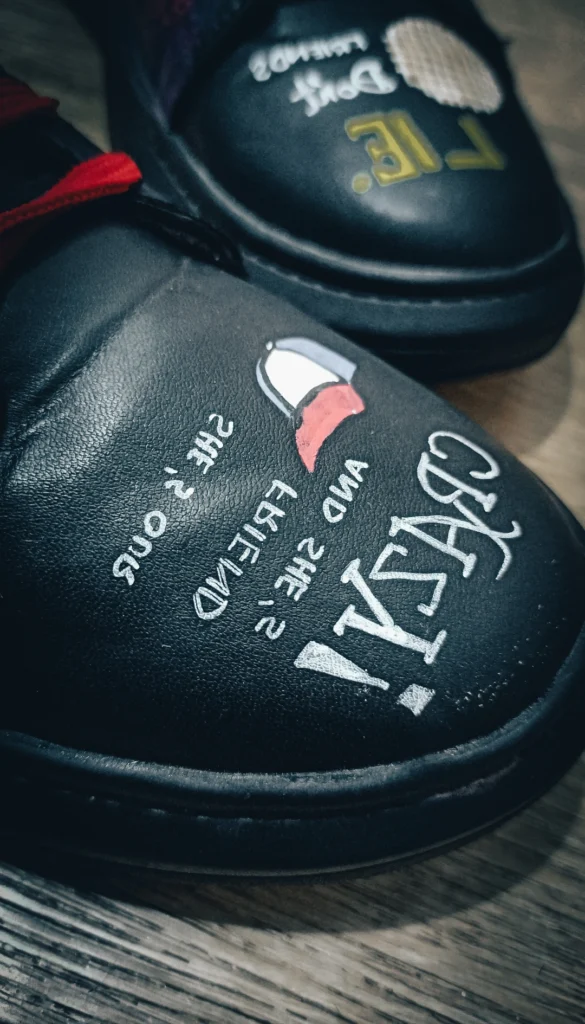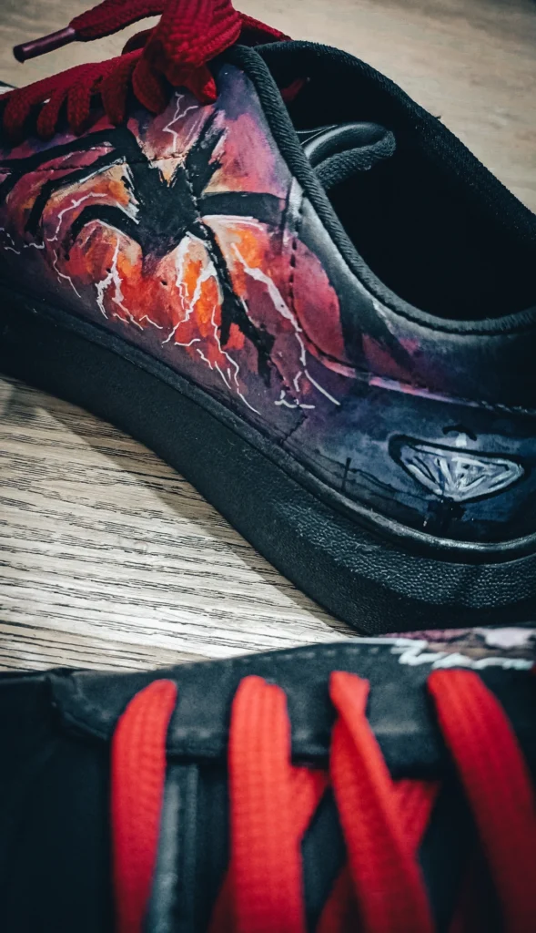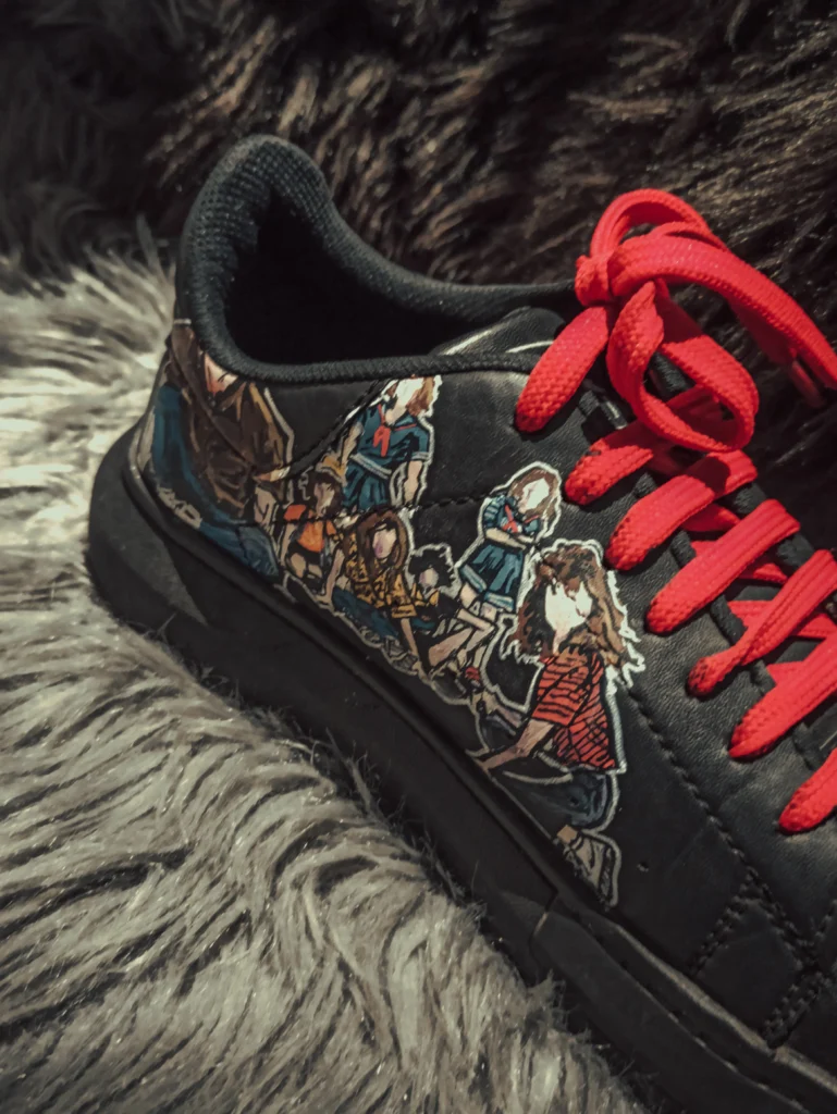 This one is a stranger things series based customization shoes that was painted with Angelus paints and coated with their acrylic finisher. Also used Posca markers for better detailing. Finally, applied a protection spray to act as a shield.